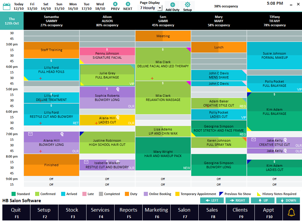 Simple drag and adjust appointments with appointment colours to quickly identify the status of each appointment. Add visual or coloured flags for further identification