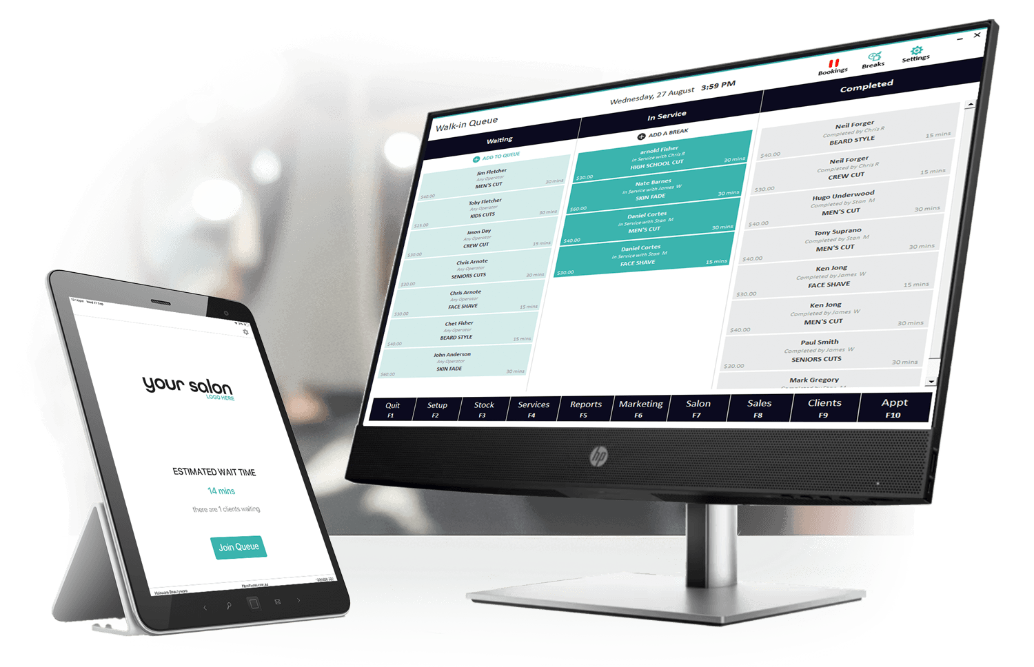 Clients can walk in and add themselves to the Queue using the HB Queue App in-salon, or your team can quickly add them through the HB Software.
